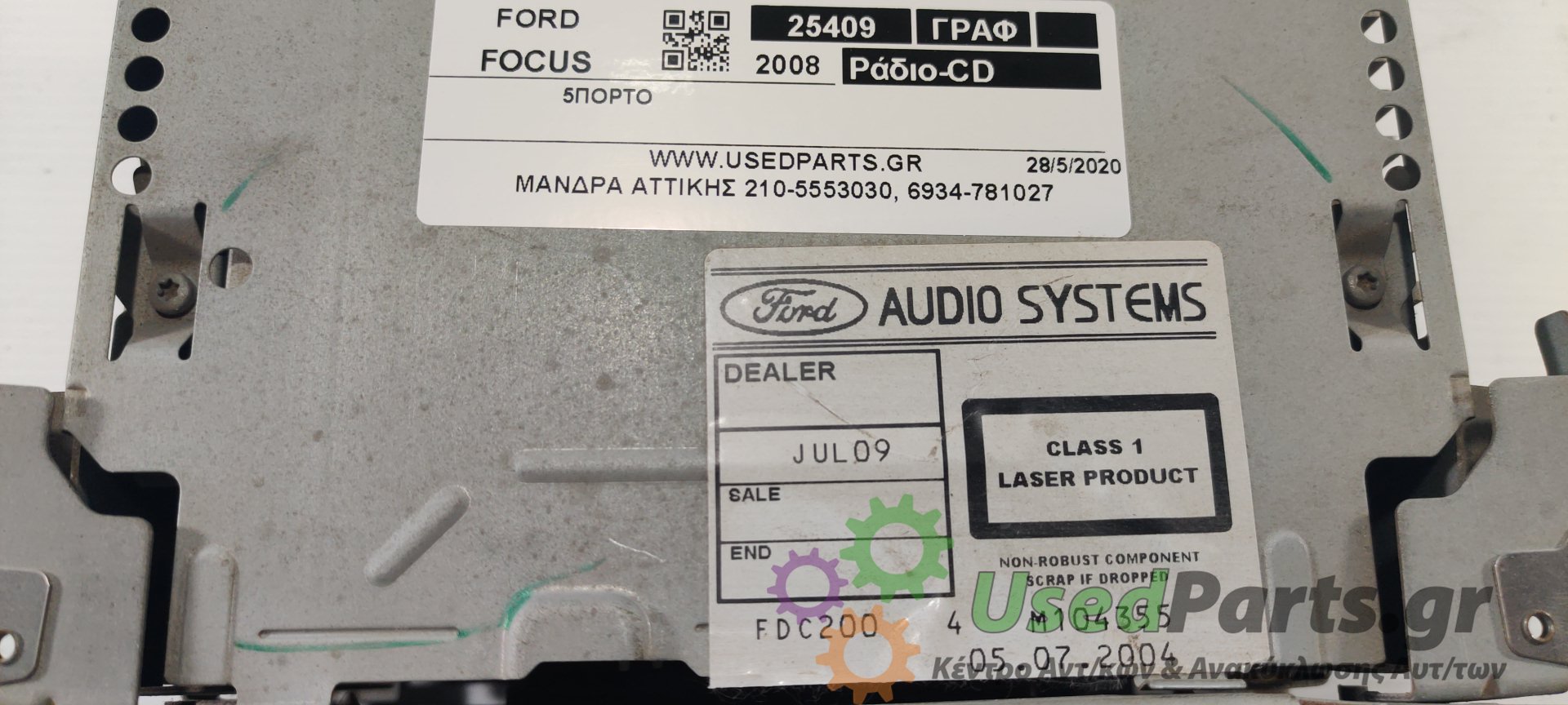 FORD - FOCUS - Ράδιο-CD - 5ΠΟΡΤΟ - ΕΤΟΣ: 2008 - ΚΩΔ.ΚΑΤ/ΣΤΗ: 6000CD FDC200 M104355 10R-021645